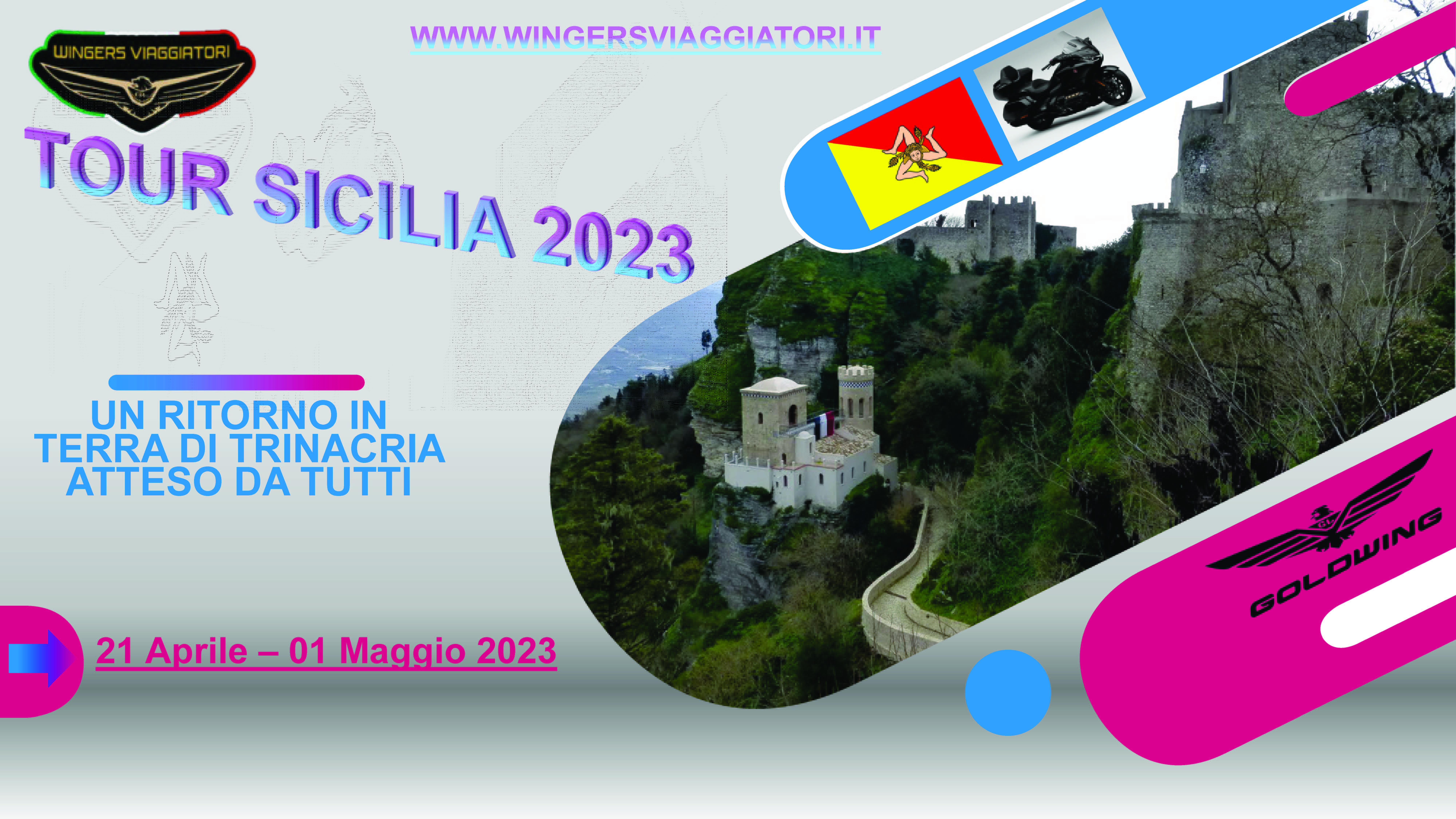 A grande richiesta ritorna un classico tour.......quello della Sicilia. Nuovi luoghi e nuove avventure ci aspettano. Tenetevi liberi dal 21 aprile al 1 maggio 2023. La compagnia dei wingersviaggiatori vi aspetta per questa indimenticabile gita in terra di trinacria!!!ATTENZIONE IL TOUR DELLA SICILIA E' STATO, PER ORA, RIMANDATO A DATA DA DESTINARSI. PROBABILMENTE IN OTTOBRE. STAY TUNED!!!